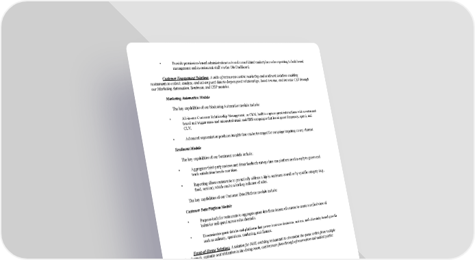 • Provide permission-based administration tools and consolidated marketplace sales reporting to both brand management and in-restaurant staff via the Olo Dashboard. Customer Engagement Solutions . A suite of restaurant-centric marketing and sentiment solutions enabling restaurants to collect, analyze, and act on guest data to deepen guest relationships, boost revenue, and increase CLV through our Marketing Automation, Sentiment, and CDP modules. Marketing Automation Module The key capabilities of our Marketing Automation module include: • All-in-one Customer Relationship Management, or CRM, built to capture guest interactions with a restaurant brand and trigger mass and automated email and SMS campaigns that boost guest frequency, spend, and CLV. • Advanced segmentation produces insights that can be leveraged for campaign targeting on any channel. Sentiment Module The key capabilities of our Sentiment module include: • Aggregates third-party reviews and direct feedback surveys into one platform used to reply to guests and track satisfaction trends over time. • Reporting allows restaurants to proactively address a dip in sentiment overall or by specific category (e.g., food, service), which can be a leading indicator of sales. The key capabilities of our Customer Data Platform module include: Customer Data Platform Module • Purpose-built for restaurants to aggregate guest data from dozens of sources to create a unified view of behavior and spend across sales channels. • Disseminates guest data to end-platforms that power business decisions, actions, and ultimately brand growth such as culinary, operations, marketing, and finance. Front-of-House Solutions . A solution for FOH , enabling restaurants to streamline the queue orders from multiple sales channels, optimize seat utilization in the dining room, and increase flow-through of reservation and waitlist parties through the Host module . Host Module The key capabilities of our Host module include: • Direct to consumer, location-specific reservations and waitlists. • Suite of wait quote algorithms that leverage machine learning to improve quote accuracy over time, ultimately boosting on-premise guest conversion rates. • Integrations with POS and our Ordering module to enable efficient management of both the dining room and queue of online orders. • Two-way text communication with dine-in guests and those who order for pick-up. • Automated actions that free up hosts to engage with guests and increase operational efficiency. 7