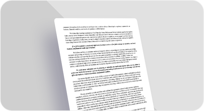 consumer information. In the event that we are found to be in violation of any of these legal or regulatory requirements, our business, financial condition, and results of operations could be harmed. We believe the licensing requirements of the Financial Crimes Enforcement Network and state agencies that regulate banks, money service businesses, money transmitters, and other providers of electronic commerce services do not apply to us. One or more governmental agencies may conclude that, under its statutes or regulations, we are engaged in activity requiring licensing or registration. In that event, we may be subject to monetary penalties and adverse publicity, and may be required to cease doing business with residents of those states until we obtain the requisite license or registration. If we fail to maintain a consistently high level of customer service or if we fail to manage our reputation, our brand, business, and financial results may be harmed. We believe our focus on customer service and support is critical to onboarding new customers, retaining our existing customers and growing our business. As a result, we have invested heavily in the quality and training of our support team along with the tools they use to provide this service. If we are unable to maintain a consistently high level of customer service, we may lose existing customers or fail to increase revenue from existing customers. In addition, our ability to attract new customers is highly dependent on our reputation and on positive recommendations from our existing customers. Any failure to maintain a consistently high level of customer service, or a market perception that we do not maintain high-quality customer service, could adversely affect our reputation and the number of positive customer referrals that we receive. We could incur substantial costs in protecting or defending our intellectual property rights, and any failure to protect our intellectual property or prevent third parties from making unauthorized use of our technology could adversely affect our business, results of operations, and financial condition. Our success depends, in part, on our ability to protect our brand and the proprietary methods and technologies that we develop under the intellectual property laws of the United States and, potentially in the future, foreign jurisdictions so that we can prevent others from using our inventions and proprietary information. Although we own nine registered trademarks in the United States, as of December 31, 2021, we hold no issued patents and therefore would not be entitled to exert patents to exclude or prevent our competitors from using our proprietary technology, methods, and processes to the extent independently developed by our competitors. We rely primarily on trade secret laws and confidentiality agreements with our business partners, employees, consultants, advisors, customers, and other current or prospective partners in our efforts to protect our proprietary technology, confidential information, processes, methods, and intellectual property. These confidentiality agreements may not effectively prevent disclosure of our confidential information or the unauthorized use of our technology, and it may be possible for unauthorized parties to copy our software or other proprietary technology or information, or to develop similar software independently without our having an adequate remedy for unauthorized use or disclosure of our confidential information. In addition, others may independently discover our trade secrets and proprietary information, and in these cases, we would not be able to assert any trade secret rights against those parties. Costly and time-consuming litigation could be necessary to enforce and determine the scope of our proprietary rights, and failure to obtain or maintain trade secret protection could adversely affect our competitive business position. In addition, the laws of some countries do not protect intellectual property and other proprietary rights to the same extent as the laws of the United States. To the extent we expand our international activities, our exposure to unauthorized copying, transfer, and use of our proprietary technology or information may increase. We cannot be certain that our means of protecting our intellectual property and proprietary rights will be adequate or that our competitors will not independently develop similar technology. If we fail to meaningfully protect our intellectual property and proprietary rights, our business, results of operations, and financial condition could be adversely affected. Any future litigation against us could be costly and time-consuming to defend. We may become subject to legal proceedings and claims that arise in the ordinary course of business, such as claims brought by our customers, our partners, or third parties in connection with commercial disputes or our technology or employment claims made by our current or former employees or the current or former employees of companies acquired through acquisitions. Litigation might result in substantial costs and may divert management’s attention and resources, which might seriously harm our business, financial condition, and results of operations. Insurance might not cover such claims, might not provide sufficient payments to cover all the costs to resolve one or more of such claims, and might not continue to be available on terms acceptable to us. A claim brought against us that is uninsured or underinsured could result in unanticipated costs, potentially harming our business, financial position, and results of operations. 35