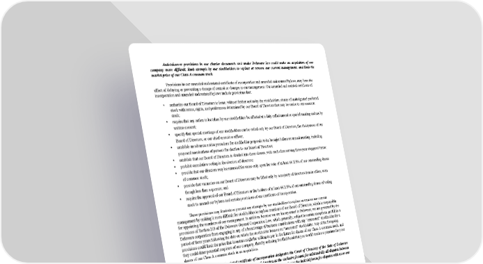 Anti-takeover provisions in our charter documents and under Delaware law could make an acquisition of our company more difficult, limit attempts by our stockholders to replace or remove our current management, and limit the market price of our Class A common stock. Provisions in our amended and restated certificate of incorporation and amended and restated bylaws, may have the effect of delaying or preventing a change of control or changes in our management. Our amended and restated certificate of incorporation and amended and restated bylaws include provisions that: • authorize our Board of Directors to issue, without further action by the stockholders, shares of undesignated preferred stock with terms, rights, and preferences determined by our Board of Directors that may be senior to our common stock; • require that any action to be taken by our stockholders be affected at a duly called annual or special meeting and not by written consent; • specify that special meetings of our stockholders can be called only by our Board of Directors, the chairperson of our Board of Directors, or our chief executive officer; • establish an advance notice procedure for stockholder proposals to be brought before an annual meeting, including proposed nominations of persons for election to our Board of Directors; • establish that our Board of Directors is divided into three classes, with each class serving three-year staggered terms; • prohibit cumulative voting in the election of directors; • provide that our directors may be removed for cause only upon the vote of at least 66 2/3% of our outstanding shares of common stock; • provide that vacancies on our Board of Directors may be filled only by a majority of directors then in office, even though less than a quorum; and • require the approval of our Board of Directors or the holders of at least 66 2/3% of our outstanding shares of voting stock to amend our bylaws and certain provisions of our certificate of incorporation. These provisions may frustrate or prevent any attempts by our stockholders to replace or remove our current management by making it more difficult for stockholders to replace members of our Board of Directors, which is responsible for appointing the members of our management. In addition, because we are incorporated in Delaware, we are governed by the provisions of Section 203 of the Delaware General Corporation Law, which generally, subject to certain exceptions, prohibits a Delaware corporation from engaging in any of a broad range of business combinations with any “interested” stockholder for a period of three years following the date on which the stockholder became an “interested” stockholder. Any of the foregoing provisions could limit the price that investors might be willing to pay in the future for shares of our Class A common stock, and they could deter potential acquirers of our company, thereby reducing the likelihood that you would receive a premium for your shares of our Class A common stock in an acquisition. Our amended and restated certificate of incorporation designates the Court of Chancery of the State of Delaware and the federal district courts of the United States of America as the exclusive forums for substantially all disputes between us and our stockholders, which may restrict our stockholders’ ability to choose the judicial forum for disputes with us or our directors, officers, or employees. Our amended and restated certificate of incorporation provides that, unless we consent in writing to an alternative forum, the Court of Chancery of the State of Delaware is the exclusive forum for the following types of claims or causes of action under Delaware statutory or common law: any derivative claims or causes of action brought on our behalf; any claims or causes of action for breach of a fiduciary duty owed by any current or former director, officer or other employee of ours; any action asserting a claim arising pursuant to the Delaware General Corporation Law, our amended and restated certificate of incorporation, or our amended and restated bylaws; any claim or cause of action seeking to interpret, apply, enforce, or determine the validity of our amended and restated certificate of incorporation or our amended and restated bylaws; any claim or causes of action as to which the Delaware General Corporation Law confers jurisdiction on the Court of Chancery of the State of Delaware; or any action asserting a claim against us that is governed by the internal affairs doctrine; provided, however, that these provisions do not apply to claims or causes of action brought to enforce a duty or liability created by the Exchange Act or the Securities Act. In addition, our amended and restated certificate of incorporation provides that the federal district courts of the United States of America will be the exclusive forum for resolving any complaint asserting a cause of action arising under the Securities Act. In addition, our amended and restated articles of incorporation provide that any person or entity purchasing or otherwise acquiring any interest in any security of ours is deemed to have notice of and consented to 43