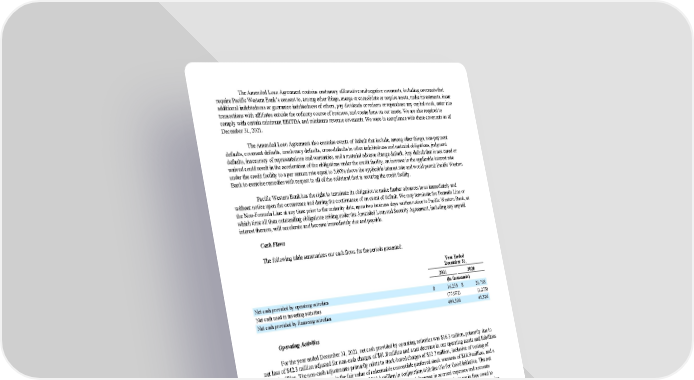 The Amended Loan Agreement contains customary affirmative and negative covenants, including covenants that require Pacific Western Bank’s consent to, among other things, merge or consolidate or acquire assets, make investments, incur additional indebtedness or guarantee indebtedness of others, pay dividends or redeem or repurchase any capital stock, enter into transactions with affiliates outside the ordinary course of business, and create liens on our assets. We are also required to comply with certain minimum EBITDA and minimum revenue covenants. We were in compliance with these covenants as of December 31, 2021 . The Amended Loan Agreement also contains events of default that include, among other things, non-payment defaults, covenant defaults, insolvency defaults, cross-defaults to other indebtedness and material obligations, judgment defaults, inaccuracy of representations and warranties, and a material adverse change default. Any default that is not cured or waived could result in the acceleration of the obligations under the credit facility, an increase in the applicable interest rate under the credit facility to a per annum rate equal to 5.00% above the applicable interest rate and would permit Pacific Western Bank to exercise remedies with respect to all of the collateral that is securing the credit facility. Pacific Western Bank has the right to terminate its obligation to make further advances to us immediately and without notice upon the occurrence and during the continuance of an event of default. We may terminate the Formula Line or the Non-Formula Line at any time prior to the maturity date, upon two business days written notice to Pacific Western Bank, at which time all then outstanding obligations arising under the Amended Loan and Security Agreement, including any unpaid interest thereon, will accelerate and become immediately due and payable. Cash Flows The following table summarizes our cash flows for the periods presented : Year Ended December 31, 2021 2020 (in thousands) Net cash provided by operating activities $ 16,253 $ 20,768 Net cash used in investing activities (77,072) (1,273) Net cash provided by financing activities 499,508 45,326 Operating Activities For the year ended December 31, 2021 , net cash provided by operating activities was $16.3 million , primarily due to net loss of $42.3 million adjusted for non-cash charges of $61.8 million and a net decrease in our operating assets and liabilities of $3.3 million . The non-cash adjustments primarily relate to stock-based charges of $32.7 million , inclusive of vesting of SARs of $2.8 million , the change in the fair value of redeemable convertible preferred stock warrants of $18.9 million , and a charge related to a charitable donor-advised fund of $13.1 million in conjunction with the Olo for Good initiative . The net decrease in operating assets and liabilities was primarily attributable to: a net decrease in accrued expenses and accounts payable of $5.2 million related to payments to vendors and employee compensation, offset by an increase in fees owed to delivery service providers; an increase in prepaid expenses of $2.8 million due to insurance payments and software licensing fees; and increases in contract assets and deferred contracts costs of $1.1 million primarily due to the growth of our revenue. This decrease was offset by a net decrease in accounts receivable of $3.7 million due to improved collections and a net increase of $2.3 million in unearned revenue due to the overall growth of our revenue. For the year ended December 31, 2020 , net cash provided by operating activities was $20.8 million , primarily due to net income of $3.1 million adjusted for non-cash charges of $19.4 million and a net decrease in our operating assets and liabilities of $1.7 million . The non-cash adjustments primarily relate to the change in the fair value of redeemable convertible preferred stock warrants of $12.7 million , stock-based compensation of $5.4 million , depreciation and amortization of $0.7 million , and bad debt expense of $0.6 million . The net decrease in operating assets and liabilities was primarily driven by an increase in accounts receivable of $31.5 million and deferred contract costs of $2.0 million due to the growth in our revenue. These increases were offset by an increase in accounts payable and accrued expenses of $32.0 million related primarily to higher fees owed to delivery service providers and vendors of $25.4 million and $2.7 million, respectively, a result of growth in Dispatch order volumes and operations and an increase in deferred rent of $0.6 million in connection with our new corporate headquarters. 63