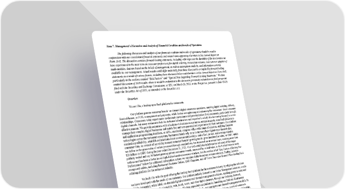 Item 7. Management’s Discussion and Analysis of Financial Condition and Results of Operations. The following discussion and analysis of our financial condition and results of operations should be read in conjunction with our consolidated financial statements and related notes appearing elsewhere in this Annual Report on Form 10-K. The discussion contains forward-looking statements, including with respect to the durability of the acceleration we have experienced in the near term on consumer preferences for digital ordering, transaction volumes, and customer adoption of multi-modules, that are based on the beliefs of management, as well as assumptions made by, and information currently available to, our management. Actual results could differ materially from those discussed in or implied by forward-looking statements as a result of various factors, including those discussed below and elsewhere in this Annual Report on Form 10-K, particularly in the sections entitled “Risk Factors” and “Special Note Regarding Forward-Looking Statements.” We have omitted discussion of 2019 results where it would be redundant to the discussion previously included in our final prospectus filed with the Securities and Exchange Commission, or SEC, on March 18, 2021, or the Prospectus, pursuant to Rule 424(b) under the Securities Act of 1933, as amended, or the Securities Act. Overview We are Olo, a leading open SaaS platform for restaurants. Our platform powers restaurant brands’ on-demand digital commerce operations, enabling digital ordering, delivery, front-of-house, or FOH, management and payments, while further strengthening and enhancing the restaurants’ direct consumer relationships. Consumers today expect more on-demand convenience and personalization from restaurants, particularly through digital channels, but many restaurants lack the in-house infrastructure and expertise to satisfy this increasing demand in a cost- effective manner. We provide restaurants with a business-to-business-to-consumer, enterprise-grade, open SaaS platform to manage their complex digital businesses and enable fast and more personalized experiences for their customers. Our platform and application programming interfaces, or APIs, seamlessly integrate with a wide range of solutions, unifying disparate technologies across the restaurant ecosystem. Restaurant brands rely on us to increase their digital omni-channel sales, maximize profitability, establish and maintain direct consumer relationships, and collect, protect, and leverage valuable consumer data. As a result of our ability to meet restaurant brands’ growing needs, gross merchandise value, or GMV, which we define as the gross value of orders processed through our platform, has increased on an annual basis, reaching more than $20 billion in GMV during the year ended December 31, 2021. Our well-established platform has led many of the major publicly traded and top 50 fastest growing private restaurant brands, measured by overall sales, in the United States to work with us and has been a factor in our high dollar-based net revenue retention. See the section titled “Key Factors Affecting Our Performance” below for additional information on how we calculate dollar-based net revenue retention. Further, industry- recognized outlets, including Restaurant Business Online, QSR Magazine, and AP News, have also deemed Olo a leading food ordering platform for the restaurant industry. We built Olo with th e goal of being the leading SaaS platform for the restaurant industry by aligning the solutions we have developed with the needs of our customers. Our platform initially focused on our Order Management solutions, a suite of fully-integrated, white-label, on-demand digital commerce and channel management solutions, enabling guests to order and pay directly from restaurants via mobile, web, kiosk, voice, and other digital channels, through our Ordering, Network, Switchboard, Kiosk, and Virtual Brands modules. We then expanded our platform by launching our Delivery Enablement s olution s , including Dispatch, our delivery enablement module, and Rails, our aggregator and channel management module. In 2021 we acquired Wisely Inc, or Wisely. This acquisition added our Customer Engagement s olution s , a suite of restaurant- centric marketing and sentiment solutions enabling restaurants to collect, analyze, and act on guest data to deepen relationships, boost revenue, and increase Customer Lifetime Value, or CLV, through the Marketing Automation, Sentiment, and Customer Data Platform, or CDP, modules, as well as our Front-of-House solutions, which enable restaurants to streamline the queue orders from multiple sales channels, optimize seat utilization in the dining room, and increase flow-through of reservation and waitlist parties through the Host module. The key milestones in our corporate history are the following: • 2005: Olo Founder and CEO Noah Glass accepted $0.5 million in Series A funding to start Mobo. • 2010: We renamed our company to “Olo” and shifted our focus to enterprise customers. • 2013: We surpassed $50 million in GMV and expanded our executive leadership team. • 2014: We surpassed $100 million in GMV, and restaurateur Danny Meyer joined our Board of Directors. • 2015: We launched Dispatch, our first significant product extension. 48