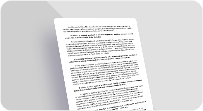 As of December 31, 2021 , holders of a substantial number of shares of our capital stock outstanding as of such date, had rights, subject to some conditions, to require us to file registration statements covering the sale of their shares or to include their shares in registration statements that we may file for ourselves or other stockholders. Our issuance of additional capital stock in connection with financings, acquisitions, investments, our equity incentive plans, or otherwise will dilute all other stockholders. We expect to issue additional capital stock in the future that will result in dilution to all other stockholders. We expect to grant equity awards to employees, directors, and consultants under our equity incentive plans. We may also raise capital through equity financings in the future. As part of our business strategy, we may acquire or make investments in companies, products, or technologies and issue equity securities to pay for any such acquisition or investment. For example, in connection with the consummation of the Wisely Acquisition, we issued shares of our Class A Common Stock to Wisely security holders. Any such issuances of additional capital stock may cause stockholders to experience significant dilution of their ownership interests and the per share value of our Class A common stock to decline. If our operating and financial performance in any given period does not meet the guidance that we provide to the public or the expectations of investment analysts, the market price of our Class A common stock may decline. We may, but are not obligated to, provide public guidance on our expected operating and financial results for future periods. Any such guidance will comprise forward-looking statements, subject to the risks and uncertainties described in this Annual Report on Form 10-K and in our other public filings and public statements. Our ability to provide this public guidance, and our ability to accurately forecast our results of operations, may be impacted by the COVID-19 pandemic. Our actual results may not always be in line with or exceed any guidance we have provided, especially in times of economic uncertainty, such as the current global economic uncertainty being experienced as a result of the COVID-19 pandemic. If, in the future, our operating or financial results for a particular period do not meet any guidance we provide or the expectations of investment analysts, or if we reduce our guidance for future periods, the market price of our Class A common stock may decline as well. Even if we do issue public guidance, there can be no assurance that we will continue to do so in the future. If securities or industry analysts do not publish research or publish unfavorable or inaccurate research about our business, the market price and trading volume of our Class A common stock could decline. The market price and trading volume of our Class A common stock is heavily influenced by the way analysts interpret our financial information and other disclosures. We do not have control over these analysts. If few securities analysts commence coverage of us, or if industry analysts cease coverage of us, our stock price would be negatively affected. If securities or industry analysts do not publish research or reports about our business, downgrade our Class A common stock, or publish negative reports about our business, our stock price would likely decline. If one or more of these analysts cease coverage of us or fail to publish reports on us regularly, demand for our Class A common stock could decrease, which might cause our stock price to decline and could decrease the trading volume of our Class A common stock. We do not intend to pay dividends for the foreseeable future and, as a result, your ability to achieve a return on your investment will depend on appreciation in the price of our Class A common stock. We have never declared or paid any cash dividends on our capital stock, and we do not intend to pay any cash dividends in the foreseeable future. Any determination to pay dividends in the future will be at the discretion of our Board of Directors. Accordingly, you may need to rely on sales of our Class A common stock after price appreciation, which may never occur, as the only way to realize any future gains on your investment. We are an “emerging growth company” and a “smaller reporting company,” and we cannot be certain if the reduced reporting and disclosure requirements applicable to emerging growth companies and smaller reporting companies will make our Class A common stock less attractive to investors. We are an “emerging growth company” and a “smaller reporting company,” as defined in the JOBS Act, and we may take advantage of certain exemptions from various reporting requirements that are applicable to other public companies that are not “emerging growth companies” and “smaller reporting companies,” including the auditor attestation requirements of Section 404, reduced disclosure obligations regarding executive compensation in our periodic reports and proxy statements, and exemptions from the requirements of holding a nonbinding advisory vote on executive compensation and stockholder approval of any golden parachute payments not previously approved. Pursuant to Section 107 of the JOBS Act, as an emerging growth company, we have elected to use the extended transition period for complying with new or revised accounting standards until those standards would otherwise apply to private companies. As a result, our consolidated financial statements may not be comparable to the financial statements of issuers who are required to comply with the effective dates for new or revised 41