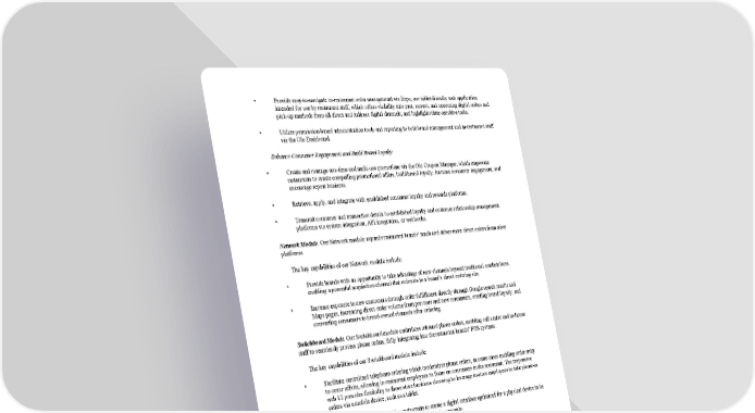• Provide easy-to-navigate in-restaurant order management via Expo, our tablet-friendly web application intended for use by restaurant staff, which offers visibility into past, current, and upcoming digital orders and pick-up methods from all direct and indirect digital channels, and highlights time-sensitive tasks. • Utilize permission-based administration tools and reporting to both brand management and in-restaurant staff via the Olo Dashboard. Enhance Consumer Engagement and Build Brand Loyalty • Create and manage one-time and multi-use promotions via the Olo Coupon Manager, which empowers restaurants to create compelling promotional offers, build brand loyalty, increase consumer engagement, and encourage repeat business. • Retrieve, apply, and integrate with established consumer loyalty and rewards platforms. • Transmit consumer and transaction details to established loyalty and customer relationship management platforms via system integration, API integration, or webhooks. Network Module . Our Network module expands restaurant brands’ reach and drives more direct orders from other platforms. The key capabilities of our Network module include: • Provide brands with an opportunity to take advantage of new channels beyond traditional marketplaces, enabling a powerful acquisition channel that redirects to a brand’s direct ordering site. • Increase exposure to new customers through order fulfillment directly through Google search results and Maps pages, increasing direct order volume from previous and new consumers, creating brand-loyalty, and converting consumers to brand-owned channels after ordering. Switchboard Module . Our Switchboard module centralizes inbound phone orders , enabling call center and in-house staff to seamlessly process phone orders, fully integrating into the restaurant brands’ POS systems . The key capabilities of our Switchboard module include: • Facilitate centralized telephone ordering which modernizes phone orders, in some cases enabling order entry to occur offsite, allowing in-restaurant employees to focus on consumers in the restaurant. The responsive web UI provides flexibility to those store locations choosing to leverage in-store employees to take phone-in orders via a mobile device, such as a tablet. Kiosk Module . Our Kiosk module enables restaurants to create a digital interface optimized for a physical device to be used in restaurants, allowing a consumer to place an order autonomously. The key capabilities of our Kiosk module include: • Enable physical structures to display information and allow for user interaction. • Facilitate an in-restaurant digital interface where a consumer places an order autonomously, having a positive impact on ordering wait time, ordering lines, and efficiency. Virtual Brands Module . Our Virtual Brands module enables a pickup and delivery service model that allows restaurant brands to leverage their operations to maximize revenue per square foot. The key capabilities of our Virtual Brands module include: • Expand brand presence and launch new concepts in same brick-and-mortar footprint. • Experiment with and test new menu items without retail overhead. 5