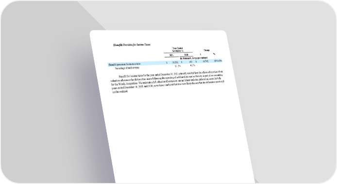 (Benefit) Provision for Income Taxes Year Ended December 31, Change 2021 2020 $ % (in thousands, except percentages) (Benefit) provision for income taxes $ (4,556) $ 189 $ (4,745) (2510.6) % Percentage of total revenue (3.1) % 0.2 % Bene fit for income taxes for the year ended December 31, 2021 primarily resulted from the release of a portion of our valuation allowance for deferred tax assets following the recording of a deferred income tax liability as part of our accounting for the Wisely Acquisition . We maintain a full valuation allowance on our net federal and state deferred tax assets for both years ended December 31, 2021 and 2020, as we have concluded that it is more likely than not that the deferred tax assets will not be realized. 61