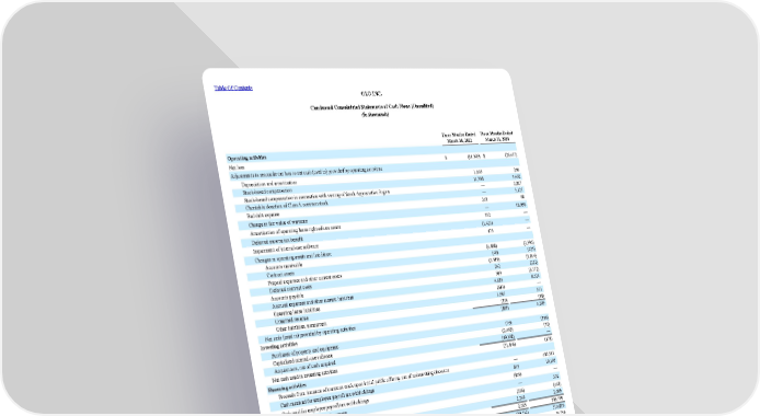 Table Of Contents OLO INC. Condensed Consolidated Statements of Cash Flows (Unaudited) (in thousands) Three Months Ended March 31, 2022 Three Months Ended March 31, 2021 Operating activities Net loss $ (11,509) $ (26,457) Adjustments to reconcile net loss to net cash (used in) provided by operating activities: Depreciation and amortization 1,109 260 Stock-based compensation 11,708 5,402 Stock-based compensation in connection with vesting of Stock Appreciation Rights — 2,847 Charitable donation of Class A common stock — 5,125 Bad debt expense 248 88 Change in fair value of warrants — 18,930 Amortization of operating lease right-of-use assets 552 — Deferred income tax benefit (1,421) — Impairment of internal-use software 475 — Changes in operating assets and liabilities: Accounts receivable (4,888) (2,390) Contract assets (40) (425) Prepaid expenses and other current assets (3,515) (1,014) Deferred contract costs 242 (222) Accounts payable 909 (6,772) Accrued expenses and other current liabilities 4,186 8,524 Operating lease liabilities (613) — Unearned revenue 1,687 371 Other liabilities, noncurrent (19) (58) Net cash (used in) provided by operating activities (889) 4,209 Investing activities Purchases of property and equipment (76) (106) Capitalized internal-use software (2,462) (72) Acquisitions, net of cash acquired (49,308) — Net cash used in investing activities (51,846) (178) Financing activities Proceeds from issuance of common stock upon initial public of fering, net of underwriting discounts — 485,541 Cash received for employee payroll tax withholdings 845 19,195 Cash paid for employee payroll tax withholdings (845) — Proceeds from exercise of warrants — 392 Payment of deferred of fering costs (226) (448) Proceeds from exercise of stock options 2,249 2,099 Net cash provided by financing activities 2,023 506,779 Net (decrease) increase in cash and cash equivalents (50,712) 510,810 Cash and cash equivalents, beginning of period 514,445 75,756 Cash and cash equivalents, end of period $ 463,733 $ 586,566 Supplemental disclosur e of non-cash investing and financing activities Accrued of fering costs $ 140 $ 4,476 Vesting of early exercised stock options $ 58 $ 58 Accretion of redeemable convertible preferred stock to redemption value $ — $ 14 Purchase of property and equipment on account $ 70 $ 24 Capitalization of stock-based compensation for internal-use software $ 749 $ 24 The accompanying notes are an integral part of these financial statements. 4