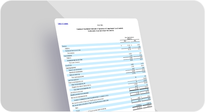 Table Of Contents OLO INC. Condensed Consolidated Statements of Operations and Comprehensive Loss (Unaudited) (in thousands, except share and per share amounts) Three Months Ended March 31, 2022 2021 Revenue: Platform $ 41,466 $ 34,923 Professional services and other 1,290 1,200 Total revenue 42,756 36,123 Cost of revenue: Platform 11,024 5,607 Professional services and other 1,778 1,243 Total cost of revenue 12,802 6,850 Gross Profit 29,954 29,273 Operating expenses: Research and development 16,825 14,456 General and administrative 17,961 18,454 Sales and marketing 8,070 3,836 Total operating expenses 42,856 36,746 Loss from operations (12,902) (7,473) Other income (expenses), net: Other income (expense), net 58 (18) Change in fair value of warrant liability — (18,930) Total other income (expenses), net 58 (18,948) Loss before income taxes (12,844) (26,421) (Benefit) provision for income taxes (1,335) 36 Net loss and comprehensive loss $ (11,509) $ (26,457) Accretion of redeemable convertible preferred stock to redemption value — (14) Net loss attributable to Class A and Class B common stockholders $ (11,509) $ (26,471) Net loss per share attributable to Class A and Class B common stockholders: Basic $ (0.07) $ (0.63) Diluted $ (0.07) $ (0.63) Weighted-average Class A and Class B common shares outstanding: Basic 159,190,371 41,855,757 Diluted 159,190,371 41,855,757 The accompanying notes are an integral part of these financial statements. 2