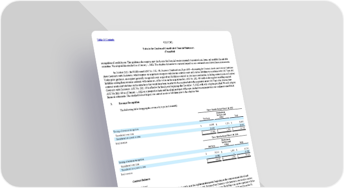 Table Of Contents OLO INC. Notes to the Condensed Consolidated Financial Statements (Unaudited) recognition of credit losses. This guidance also requires new disclosures for financial assets measured at amortized cost, loans, and available-for-sale debt securities. We adopted this standard as of January 1, 2022. The adoption did not have a material impact on our condensed consolidated financial statements. In October 2021, the FASB issued ASU No. 2021-08, Business Combinations (Topic 805)—Accounting for Contract Assets and Contract Liabilities from Contracts with Customers , which requires an acquirer to recognize and measure contract assets and contract liabilities in accordance with ASC Topic 606. Under prior guidance, an acquirer generally recognized assets acquired and liabilities assumed in a business combination, including contract assets and contract liabilities arising from revenue contracts with customers, at fair value on the acquisition date. ASU No. 2021-08 results in the acquirer recording acquired contract assets and liabilities on the same basis that would have been recorded by the acquiree before the acquisition under ASC Topic 606, Revenue from Contracts with Customers . ASU No. 2021-08 is effective for fiscal years beginning after December 15, 2022, with early adoption permitted. We early adopted ASU No 2021-08 as of January 1, 2022 on a prospective basis and the adoption impact of the new standard was not material to our condensed consolidated financial statements. The standard did not impact our contract assets or liabilities prior to the adoption date. 3. Revenue Recognition The following table disaggregates revenue by type (in thousands): Three Months Ended Mar ch 31, 2022 Platform Professional Services and Other Total Timing of revenue recognition Transferred over time $ 20,801 $ 1,290 $ 22,091 Transferred at a point in time 20,665 — 20,665 Total revenue $ 41,466 $ 1,290 $ 42,756 Three Months Ended Mar ch 31, 2021 Platform Professional Services and Other Total Timing of revenue recognition Transferred over time $ 14,543 $ 1,200 $ 15,743 Transferred at a point in time 20,380 — 20,380 Total revenue $ 34,923 $ 1,200 $ 36,123 Contract Balances Contract Asset Professional services revenue is generally recognized ratably over the implementation period, beginning on the commencement date of each contract. Platform revenue is recognized as the services are delivered. Under ASC Topic 606, Revenue from Contracts with Customers , we record a contract asset when revenue recognized on a contract exceeds the billings. Our standard billing terms are monthly; however, the billings may not be consistent with the pattern of recognition, based on when services are performed. Contract assets were $1.0 million for both periods ending March 31, 2022 and December 31, 2021. Unearned Revenue Unearned revenue primarily consists of billings or payments received in advance of revenue recognition from subscription services and is recognized as revenue when transfer of control to customers has occurred. During the three months ended March 31, 2022, we recognized $0.5 million of revenue related to contracts that were included in unearned revenue at December 31, 2021. During the three months ended March 31, 2021, we recognized $0.1 million of revenue related to contracts that were included in unearned revenue at December 31, 2020. 10