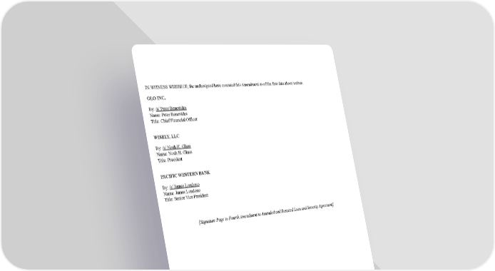 IN WITNESS WHEREOF , the undersigned have executed this Amendment as of the first date above written. OLO INC. By: /s/ Peter Benevides Name: Peter Benevides Title: Chief Financial Of ficer WISEL Y, LLC By: /s/ Noah H. Glass Name: Noah H. Glass Title: President PACIFIC WESTERN BANK By: /s/ James Londono Name: James Londono Title: Senior Vice President [Signatur e Page to Fourth Amendment to Amended and Restated Loan and Security Agreement]