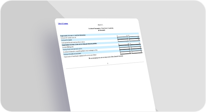Table Of Contents OLO INC. Condensed Statements of Cash Flows (Unaudited) (in thousands) Supplemental disclosure of cash flow information Cash paid for income taxes, net $ 69 $ — Cash paid for interest $ — $ 157 Cash received for early exercise of stock options $ — $ 156 Supplemental disclosure of non-cash investing and financing activities Accrued offering costs $ 339 $ 710 Vesting of early exercised stock options $ 174 $ — Accretion of redeemable convertible preferred stock to redemption value $ 14 $ 52 Purchase of property and equipment $ 34 $ 46 Capitalization of stock-based compensation for internal-use software $ 173 $ 31 The accompanying notes are an integral part of these financial statements. 6