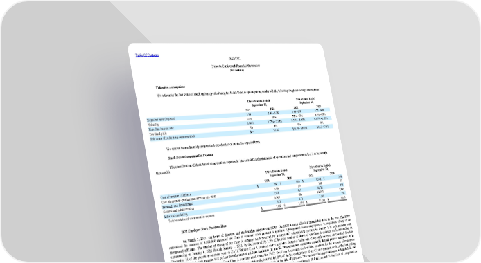 Table Of Contents OLO INC. Notes to Condensed Financial Statements (Unaudited) Valuation Assumptions We estimated the fair value of stock options granted using the Black-Scholes option pricing model with the following weighted-average assumptions: Three Months Ended September 30, Nine Months Ended September 30, 2021 2020 2021 2020 Expected term (in years) 0.00 5.94 - 6.08 5.48 - 6.07 5.52 - 6.08 Volatility —% 66% 52% - 65% 43% - 66% Risk-free interest rate 0.00% 0.37% - 0.39% 0.50% - 1.06% 0.37% - 1.63% Dividend yield 0% 0% 0% 0% Fair value of underlying common stock $— $7.32 $16.78 - $30.02 $4.06 - $7.32 We elected to use the midpoint practical expedient to calculate the expected term. Stock-Based Compensation Expense The classification of stock-based compensation expense by line item within the statements of operations and comprehensive loss is as follows (in thousands): Three Months Ended September 30, Nine Months Ended September 30, 2021 2020 2021 2020 Cost of revenue - platform $ 762 $ 140 $ 1,942 $ 348 Cost of revenue - professional services and other 116 33 362 72 Research and development 2,570 413 8,522 940 General and administrative 3,907 681 12,002 1,884 Sales and marketing 512 111 1,436 221 Total stock-based compensation expense $ 7,867 $ 1,378 $ 24,264 $ 3,465 2021 Employee Stock Purchase Plan On March 5, 2021, our board of directors and stockholders adopted our ESPP. The ESPP became effective immediately prior to the IPO. The ESPP authorized the issuance of 3,900,000 shares of our Class A common stock pursuant to purchase rights granted to our employees or to employees of any of our designated affiliates. The number of shares of our Class A common stock reserved for issuance will automatically increase on January 1 of each calendar year, commencing on January 1, 2022 through January 1, 2031, by the lesser of (1) 1.0% of the total number of shares of our Class A common stock outstanding on December 31 of the preceding calendar year, or (2) 11,700,000 Class A common shares; provided, that prior to the date of any such increase, our board of directors may determine that such increase will be less than the amount set forth in clauses (1) and (2). Employees may contribute, normally through payroll deductions, up to 15% of their earnings for the purchase of our Class A common stock under the ESPP. Our Class A common stock will be purchased for the accounts of employees participating in the ESPP at a price per Class A common share equal to the lower of (a) 85% of the fair market value of our Class A common stock on the first trading date of an offering or (b) 85% of the fair market value of our Class A common stock on the date of purchase. The current offering period began in March 2021 and ends in December 2021. For the three and nine months ended September 30, 2021, we have recorded approximately $0.4 million and $0.9 million of compensation expense associated with our ESPP, respectively. 10. Warrants Redeemable Convertible Preferred Stock Warrants Prior to the IPO, warrants to purchase 1,682,847 shares of our outstanding redeemable convertible preferred stock were exercised and converted into redeemable convertible preferred stock. Upon completion of the IPO, all shares of our outstanding redeemable convertible preferred stock, inclusive of the shares issued pursuant to these warrant exercises, 20