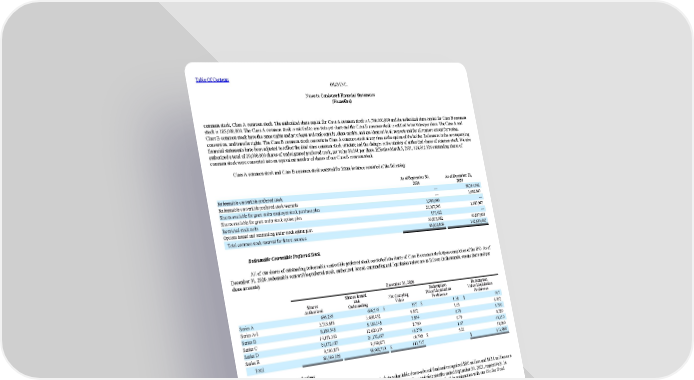 Table Of Contents OLO INC. Notes to Condensed Financial Statements (Unaudited) common stock, Class A common stock. The authorized share capital for Class A common stock is 1,700,000,000 and the authorized share capital for Class B common stock is 185,000,000. The Class A common stock is entitled to one vote per share and the Class B common stock is entitled to ten votes per share. The Class A and Class B common stock have the same rights and privileges and rank equally, share ratably, and are identical in all respects and for all matters except for voting, conversion, and transfer rights. The Class B common stock converts to Class A common stock at any time at the option of the holder. References in the accompanying financial statements have been adjusted to reflect the dual class common stock structure and the changes in the number of authorized shares of common stock. We also authorized a total of 20,000,000 shares of undesignated preferred stock, par value $0.001 per share. Effective March 5, 2021, 124,012,926 outstanding shares of common stock were converted into an equivalent number of shares of our Class B common stock. Class A common stock and Class B common stock reserved for future issuance consisted of the following: As of September 30, 2021 As of December 31, 2020 Redeemable convertible preferred stock — 98,514,932 Redeemable convertible preferred stock warrants — 1,682,847 Shares available for grant under employee stock purchase plan 3,900,000 — Shares available for grant under stock option plan 20,067,705 1,687,947 Restricted stock units 155,422 — Options issued and outstanding under stock option plan 39,815,982 40,807,939 Total common stock reserved for future issuance 63,939,109 142,693,665 Redeemable Convertible Preferred Stock All of our shares of outstanding redeemable convertible preferred stock converted into shares of Class B common stock upon completion of the IPO. As of December 31, 2020, redeemable convertible preferred stock, authorized, issued, outstanding and liquidation values are as follows (in thousands, except share and per share amounts): December 31, 2020 Shares Authorized Shares Issued and Outstanding Net Carrying Value Redemption Price/Liquidation Preference Redemption Value/Liquidation Preference Series A 696,235 696,235 $ 957 $ 1.38 $ 957 Series A-1 3,713,616 3,698,452 6,092 1.65 6,092 Series B 8,184,548 8,184,548 5,854 0.70 5,700 Series C 14,151,361 12,620,154 8,760 0.70 8,789 Series D 24,172,487 24,172,487 40,276 1.67 40,350 Series E 9,590,873 9,590,873 49,798 $ 5.21 50,000 Total 60,509,120 58,962,749 $ 111,737 $ 111,888 Charitable Contributions We donated 172,918 and 345,836 shares of our Class A common stock to a charitable donor-advised fund and recognized $8.0 million and $13.1 million as a non-cash general and administrative expense in our Condensed Statement of Operations for the three and nine months ended September 30, 2021, respectively. In March 2021, our board of directors authorized the issuance of 1,729,189 shares of our Class A common stock to this fund in conjunction with our Olo for Good initiative. We may donate 1/10th of the total shares authorized into the fund on or about each anniversary of such date. 17