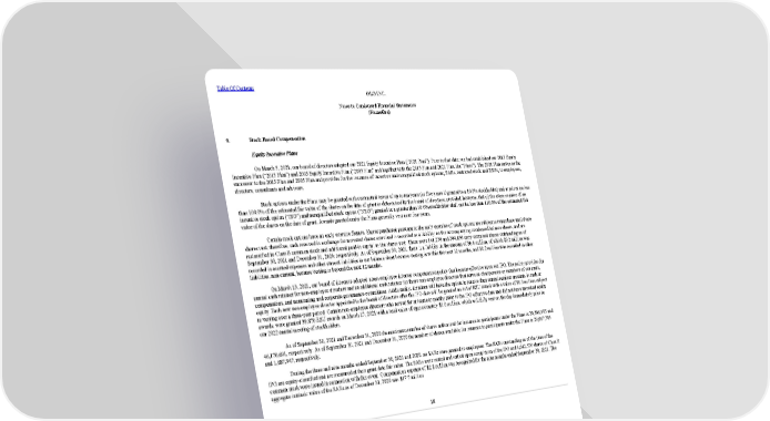Table Of Contents OLO INC. Notes to Condensed Financial Statements (Unaudited) 9. Stock-Based Compensation Equity Incentive Plans On March 5, 2021, our board of directors adopted our 2021 Equity Incentive Plan (“2021 Plan”). Prior to that date, we had established our 2015 Equity Incentive Plan (“2015 Plan”) and 2005 Equity Incentive Plan (“2005 Plan” and together with the 2015 Plan and 2021 Plan, the “Plans”). The 2021 Plan serves as the successor to the 2015 Plan and 2005 Plan and provides for the issuance of incentive and nonqualified stock options, SARs, restricted stock and RSUs, to employees, directors, consultants and advisors. Stock options under the Plans may be granted with contractual terms of up to ten years (or five years if granted to a 10.0% stockholder) and at prices no less than 100.0% of the estimated fair value of the shares on the date of grant as determined by the board of directors; provided, however, that (i) the exercise price of an incentive stock option (“ISO”) and nonqualified stock option (“NSO”) granted to a greater than 10.0% stockholder shall not be less than 110.0% of the estimated fair value of the shares on the date of grant. Awards granted under the Plans generally vest over four years. Certain stock options have an early exercise feature. Shares purchased pursuant to the early exercise of stock options are subject to repurchase until those shares vest; therefore, cash received in exchange for unvested shares exercised is recorded as a liability on the accompanying condensed balance sheets, and are reclassified to Class B common stock and additional paid-in capital as the shares vest. There were 141,270 and 204,850 early exercised shares outstanding as of September 30, 2021 and December 31, 2020, respectively. As of September 30, 2021, there is a liability in the amount of $0.4 million, of which $0.2 million was recorded in accrued expenses and other current liabilities in our balance sheet because vesting is within the next 12 months, and $0.2 million was recorded in other liabilities, non-current, because vesting is beyond the next 12 months. On March 13, 2021, our board of directors adopted a non-employee director compensation policy that became effective upon our IPO. The policy provides for annual cash retainer for non-employee directors and an additional cash retainer for those non-employee directors that serve as chairpersons or members of our audit, compensation, and nominating and corporate governance committees. Additionally, directors will have the option to receive their annual retainer amounts in cash or equity. Each new non-employee director appointed to the board of directors after the IPO date will be granted an initial RSU award with a value of $0.3 million subject to vesting over a three-year period. Certain non-employee directors who served for at least six months prior to the IPO effective date and did not have unvested equity awards, were granted 39,870 RSU awards on March 17, 2021 with a total value of approximately $1.0 million, which will fully vest on the day immediately prior to our 2022 annual meeting of stockholders. As of September 30, 2021 and December 31, 2020 the maximum number of shares authorized for issuance to participants under the Plans is 20,396,975 and 46,170,691, respectively. As of September 30, 2021 and December 31, 2020 the number of shares available for issuance to participants under the Plans is 20,067,705 and 1,687,947, respectively. During the three and nine months ended September 30, 2021 and 2020, no SARs were granted to employees. The SARs outstanding as of the time of the IPO are equity-classified and are measured at their grant date fair value. The SARs were vested and settled upon completion of the IPO and 1,642,570 shares of Class B common stock were issued in connection with this event. Compensation expense of $2.8 million was recognized for the nine months ended September 30, 2021. The aggregate intrinsic value of the SARs as of December 31, 2020 was $17.7 million. 18