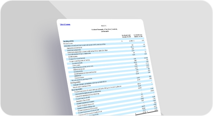 Table Of Contents OLO INC. Condensed Statements of Cash Flows (Unaudited) (in thousands) Nine Months Ended September 30, 2021 Nine Months Ended September 30, 2020 Operating activities Net (loss) income $ (40,202) $ 6,019 Adjustments to reconcile net (loss) income to net cash provided by operating activities: Depreciation and amortization 800 440 Stock-based compensation 21,417 3,465 Stock-based compensation in connection with vesting of Stock Appreciation Rights 2,847 — Charitable donation of Class A common stock 13,107 — Bad debt expense 283 520 Change in fair value of warrants 18,930 4,251 Changes in operating assets and liabilities: Accounts receivable 4,966 (30,404) Contract assets (898) (59) Prepaid expenses and other current assets (3,256) (148) Deferred contract costs (594) (1,575) Accounts payable (3,721) (3,461) Accrued expenses and other current liabilities 10,350 24,010 Deferred rent (174) 669 Unearned revenue 2,354 (337) Net cash provided by operating activities 26,209 3,390 Investing activities Purchases of property and equipment, including capitalized software (1,195) (989) Net cash used in investing activities (1,195) (989) Financing activities Proceeds from issuance of common stock upon initial public offering, net of underwriting discounts 485,541 — Cash received for employee payroll tax withholdings 25,696 — Cash paid for employee payroll tax withholdings (18,691) — Proceeds from line of credit — 15,000 Repayment of line of credit — (18,500) Proceeds from exercise of warrants 392 — Payment of deferred finance costs (135) — Payment of deferred offering costs (4,118) (1,105) Proceeds from exercise of stock options 8,287 1,708 Proceeds from issuance of preferred stock — 50,000 Costs incurred from issuance of preferred stock — (234) Net cash provided by financing activities 496,972 46,869 Net increase in cash and cash equivalents 521,986 49,270 Cash and cash equivalents, beginning of period 75,756 10,935 Cash and cash equivalents, end of period $ 597,742 $ 60,205 5