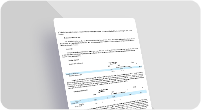 of higher hosting costs due to increased transaction volume as well as higher compensation costs associated with additional personnel to support growth in active locations. Professional Services and Other Total professional services and other cost of revenue increased $0.8 million, or 24.0%, to $4.0 million for the nine months ended September 30, 2021 from $3.2 million for the nine months ended September 30, 2020. This increase was primarily the result of increased consulting costs and higher compensation costs to support growth in active locations. Gross Profit Gross profit margin decreased to 79.5% for the nine months ended September 30, 2021 from 80.3% for the nine months ended September 30, 2020. Decreases in gross profit margin were driven by higher platform and professional services and other compensation costs to support rapid growth in transactions and active locations coming onto the platform. Operating Expenses Research and Development Nine Months Ended September 30, Change 2021 2020 $ % (in thousands, except percentages) Research and development $ 42,872 $ 22,715 $ 20,157 88.7 % Percentage of total revenue 39.2 % 33.5 % Research and development expense increased $20.2 million, or 88.7%, to $42.9 million for the nine months ended September 30, 2021 from $22.7 million for the nine months ended September 30, 2020. This increase was primarily the result of higher compensation costs associated with additional personnel and an increase in the use of software tools to support further investments in our platform development and continued product innovation. Additionally, we incurred a non-cash charge of $1.8 million in March 2021 related to the vesting and settlement of SARs in connection with the IPO. As a percent of total revenue, research and development expenses increased to 39.2% for the nine months ended September 30, 2021 from 33.5% for the nine months ended September 30, 2020. General and Administrative Nine Months Ended September 30, Change 2021 2020 $ % (in thousands, except percentages) General and administrative $ 53,034 $ 15,137 $ 37,897 250.4 % Percentage of total revenue 48.5 % 22.3 % General and administrative expense increased $37.9 million, or 250.4%, to $53.0 million for the nine months ended September 30, 2021 from $15.1 million for the nine months ended September 30, 2020. This increase was primarily a result of increased compensation costs due to increased headcount to support the growth and stage of the organization, IPO-related bonus awards, vesting and settlement of stock appreciation rights, or SARs, in connection with the IPO, as well as increased insurance costs and professional fees incurred in preparation for becoming and operating as a public company. Additionally, we incurred a non-cash charge of $13.1 million for the nine months ended September 30, 2021 related to the donation of 345,836 shares of our Class A common stock to a charitable donor-advised fund. We intend to donate additional shares to this fund in conjunction with our Olo for Good initiative. As a percent of total revenue, general and administrative expenses increased to 48.5% for the nine months ended September 30, 2021 from 22.3% for the nine months ended September 30, 2020. 37